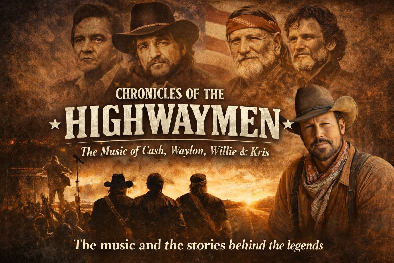 Chronicles of the Highwaymen is a powerful concert-theatrical experience that brings to life the stories and songs of four giants of American music: Johnny Cash, Waylon Jennings, Willie Nelson, and Kris Kristofferson. Each of these legends forged iconic solo careers—and in 1985, they came together to form one of the most influential supergroups of all time: The Highwaymen. Through vivid narration, behind-the-scenes stories, and dynamic live performances, Rusty Jackson takes audiences on an immersive journey into the music, friendships, and outlaw spirit that defined an era. With a voice true to the originals and a natural gift for storytelling, Rusty reveals the humanity behind these larger-than-life artists while honoring the songs that made them legends. A must-see event for fans of classic country, Americana, and powerful live storytelling.